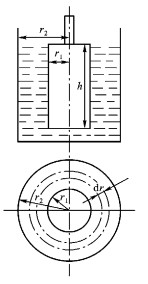 式中 , M 為各流層剪切力矩 , h 為內(nèi)筒在流體中的高度 ,τ為各流層中的切應(yīng)力.各流層剪切力矩 M 相等 ,但切應(yīng)力τ卻不相等 ,它是半徑 r 的函數(shù). 內(nèi)筒表面上的切應(yīng)力