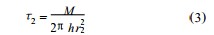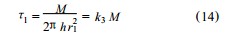 式中 , k2 為由測(cè)量系統(tǒng)尺寸決定的系數(shù).由式(2) 得到內(nèi)筒壁切應(yīng)力與旋轉(zhuǎn)力矩的關(guān)系 :